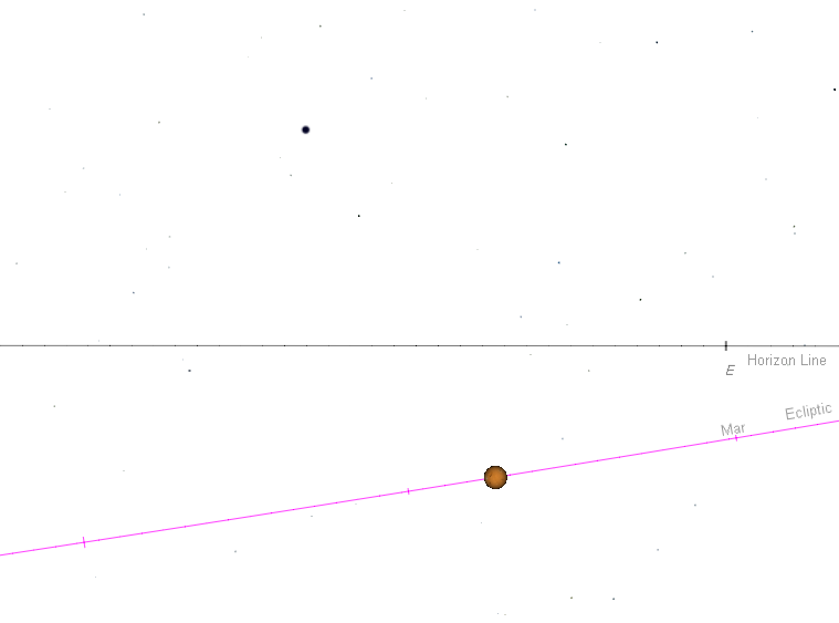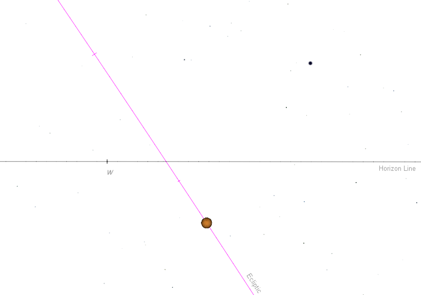 Jeg har lavet to skærmdumps (i negativ-format), for hvilke Solen står 3° under horisonten. Illustrationen til venstre viser den vestlige horisont set fra Aalborg-området 20. marts kl. 18:51. Venus står da i en højde på 4° 47' over horisonten. På illustrationen til højre ses den østlige horisont 21. marts kl. 06:04, altså 11 timer 13 minutter senere. Venus’ højde er da 4° 55'. Iagttagelse kræver ud over klart vejr også en lav horisont, og en prismekikkert vil nok være et godt hjælpemiddel. God fornøjelse med observationerne!